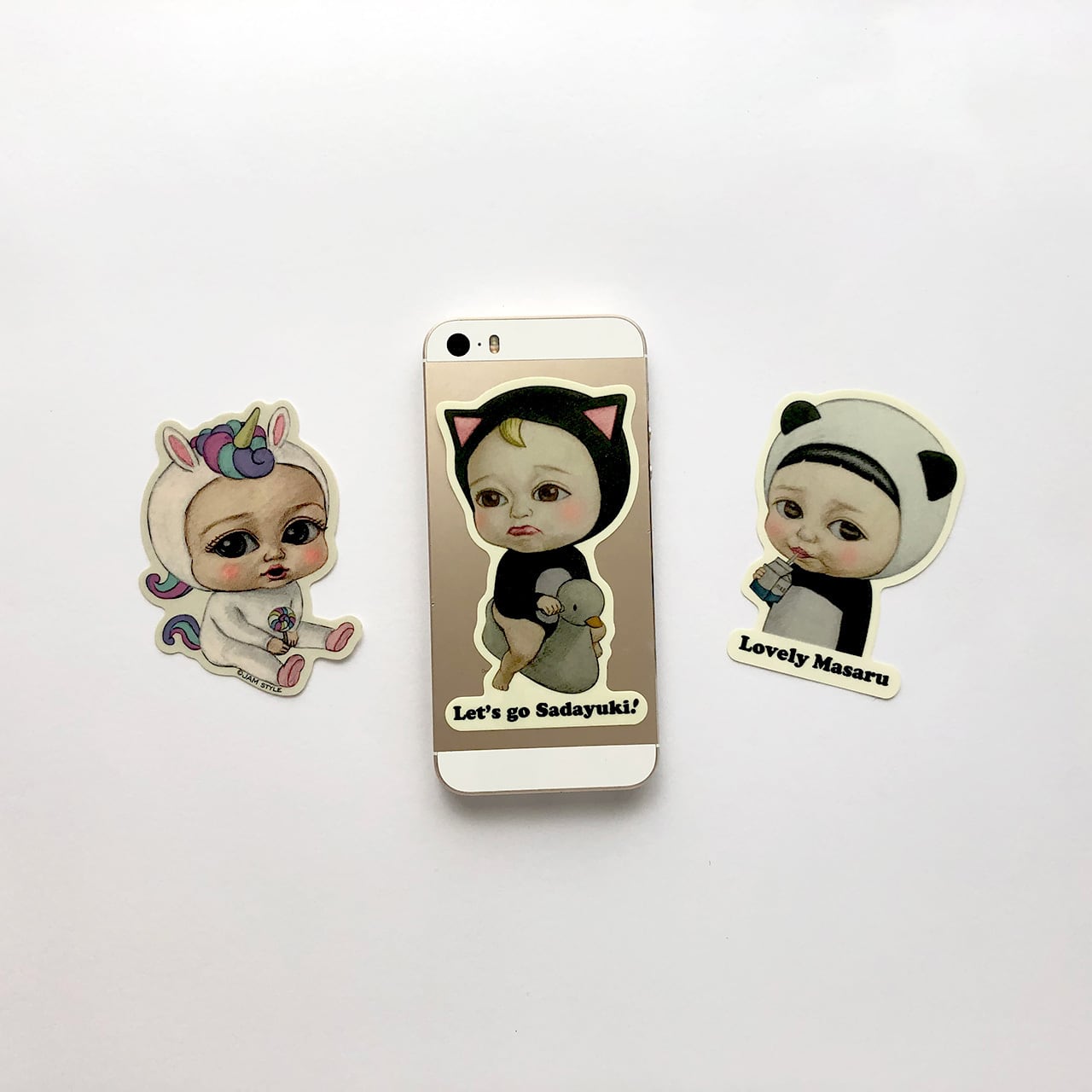 ほっとけないよまさるくんのダイカットのミニステッカーです。